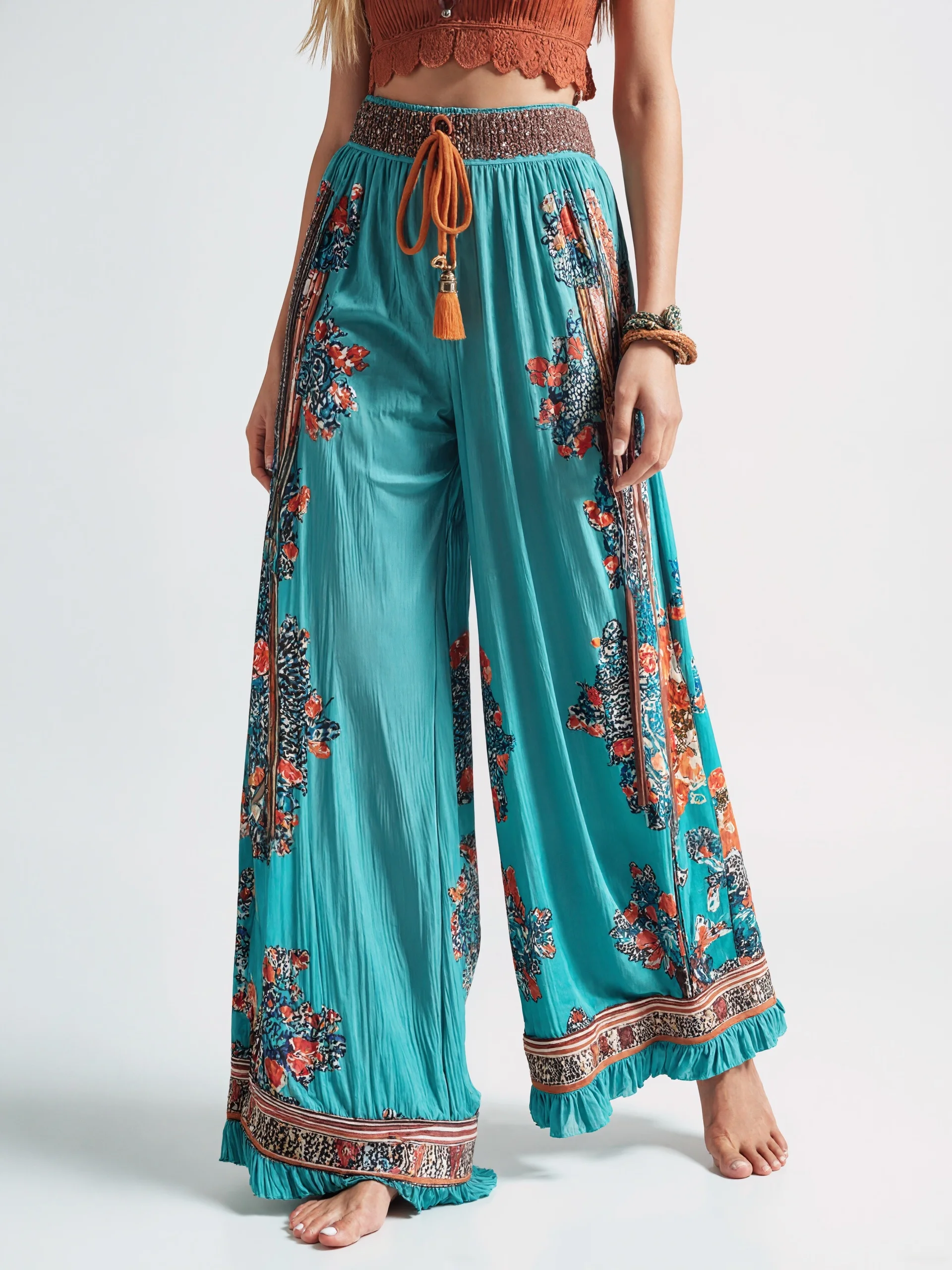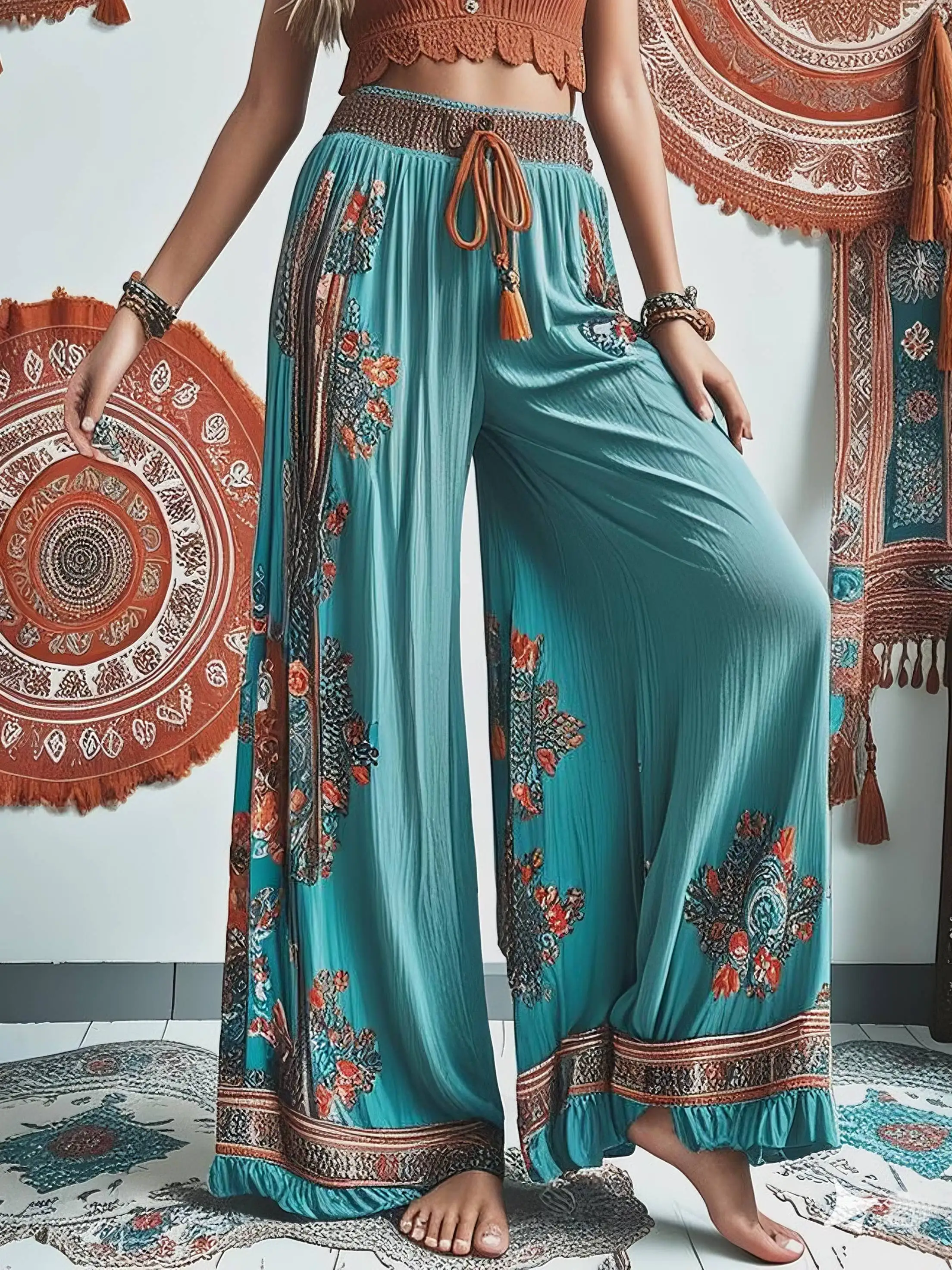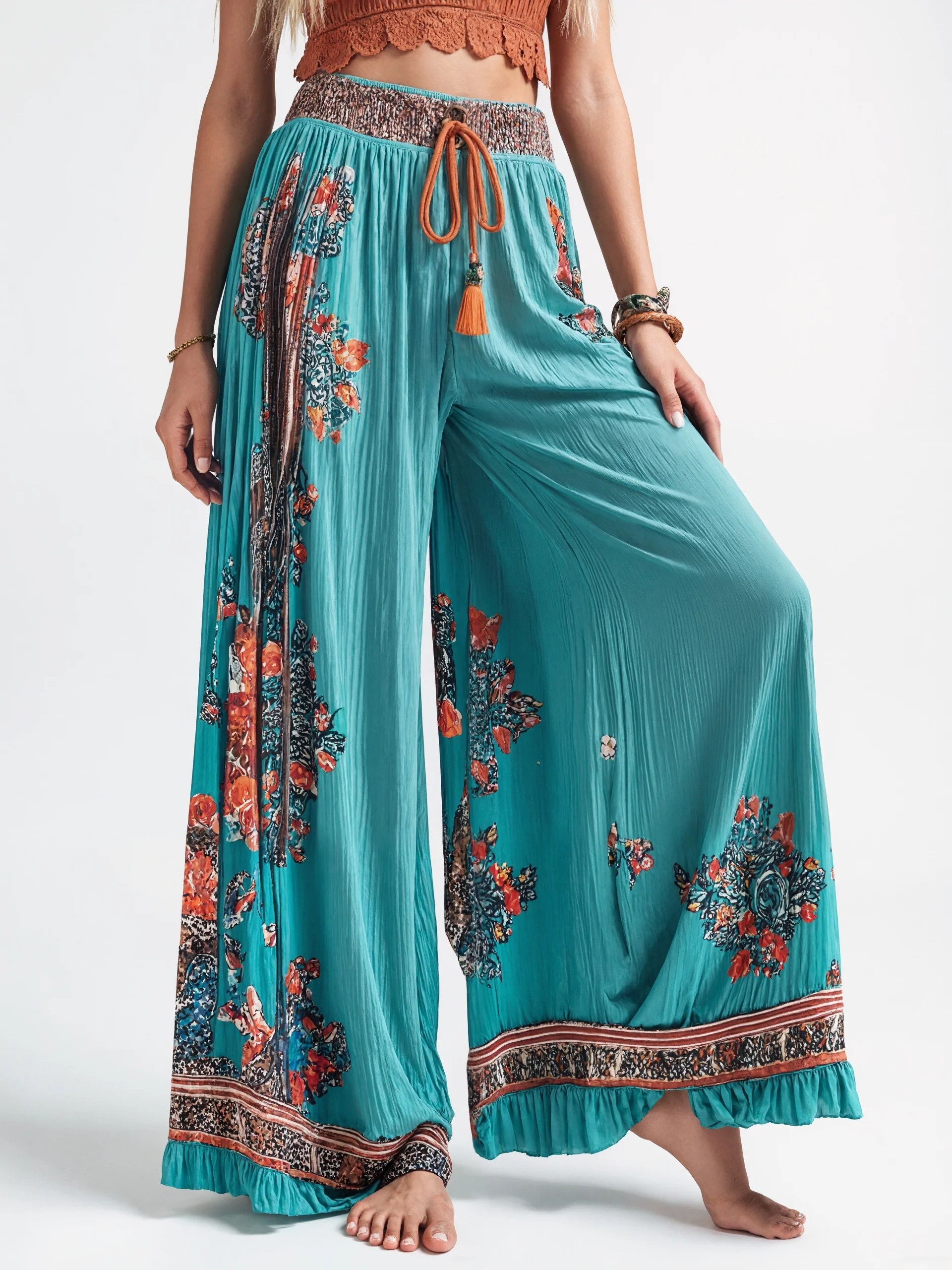 Bohemian Women's Harajuku Floral Print Wide Leg Pants